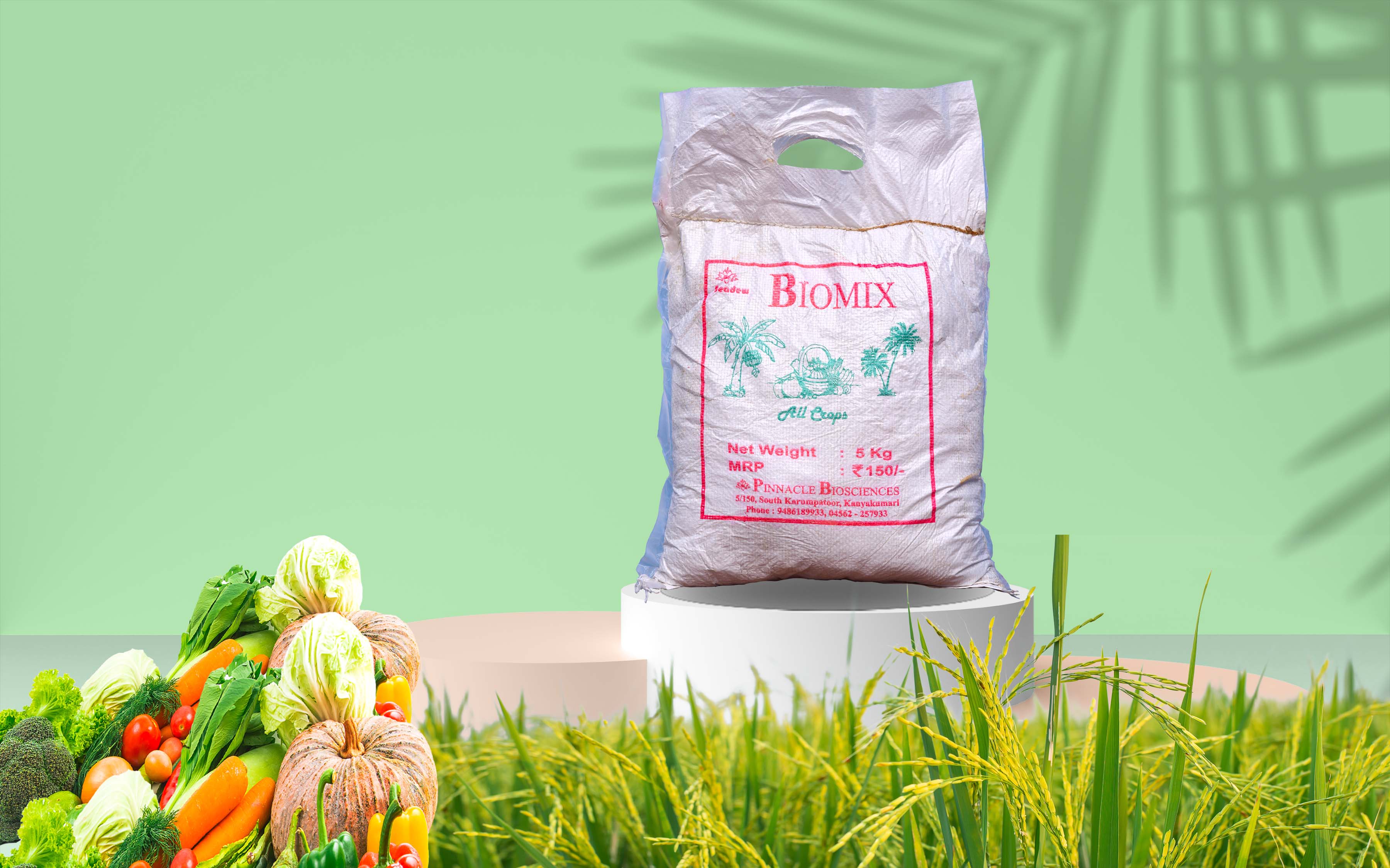 BIOMIX is an all-purpose organic fertilizer derived from vermicomposting, seaweed extract, humic acid, bokashi, fish amino acids and Most Beneficial Microbes. It is the sole Nutrition containing all the necessary nutrients the crop or plant need. It increases & strengthens the rhizosphere area of the root. Apart from fertilizer, it is an excellent soil conditioner and stabilizer. It also has highwater retention property.