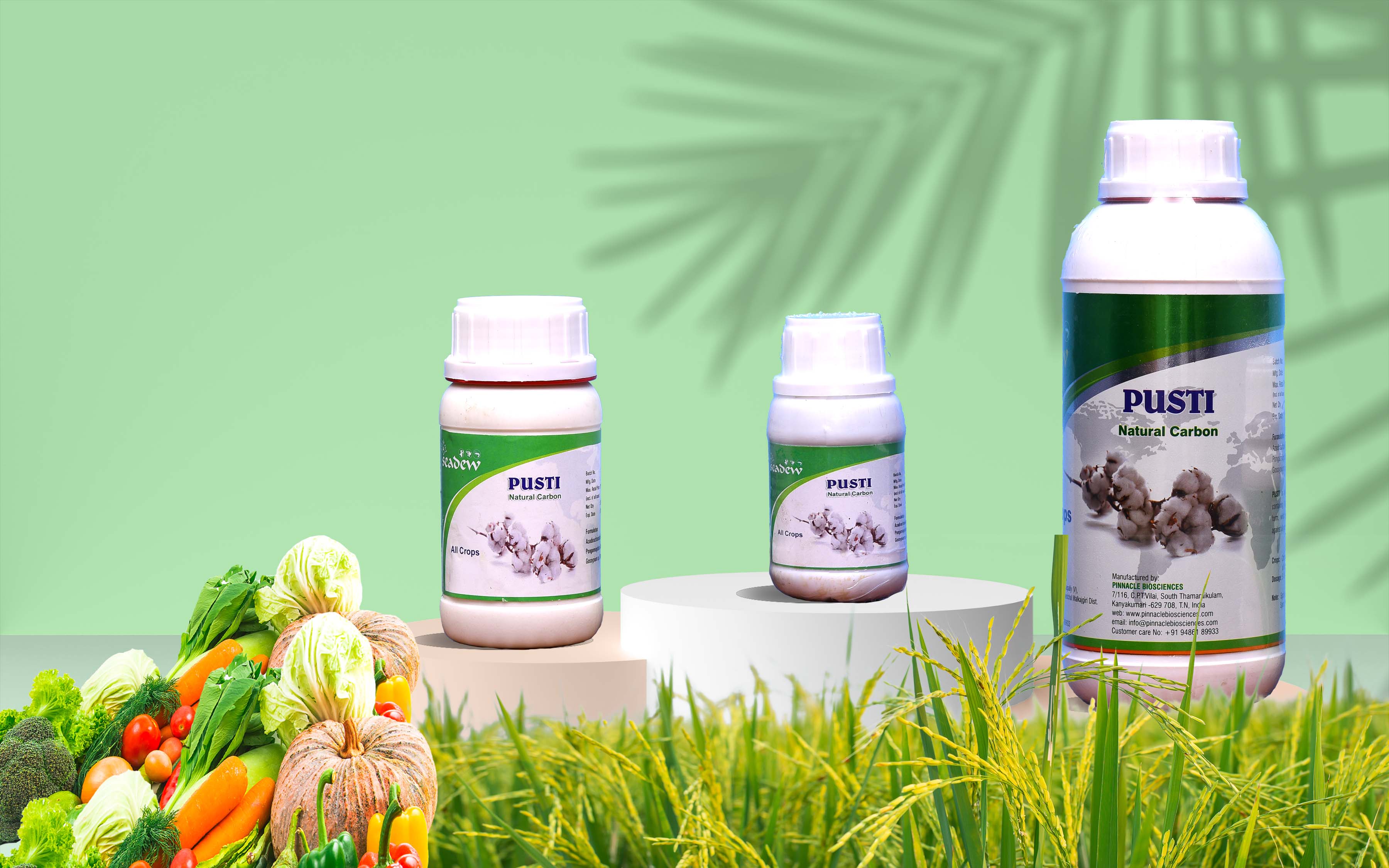 PUSTI is an advanced product derived from the oils of Neem, Karanja, and Cotton seeds. It is an ORGANIC CARBON rich source, which enhances the growth and rate of photosynthesis in plants.it improves the hormone production in plants.
